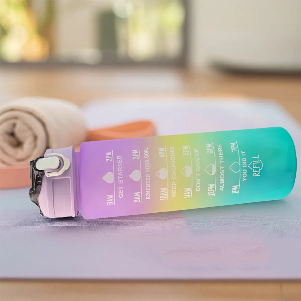 Many people forget to drink enough water during busy routines. Long work hours, gym sessions, or travel can make it easy to miss proper hydration. This can lead to tiredness and low energy throughout the day. Smart Hydration Reminder The Motivational Water Bottle with Straw helps you stay on track with your daily water goals. It features clear time markers and motivational quotes printed on the bottle, reminding you exactly when to drink water during the day. The built-in flip straw lid makes drinking easy without needing to unscrew the cap every time. The bottle also includes a secure lock system, helping prevent leaks while carrying it in bags or gym kits. Whether you're at the gym, office, school, or traveling, this bottle makes hydration simple and convenient. Its lightweight design and carry strap allow easy portability, while the transparent body helps you monitor water levels throughout the day. Stay motivated, drink more water, and maintain a healthy routine with this practical everyday hydration bottle.